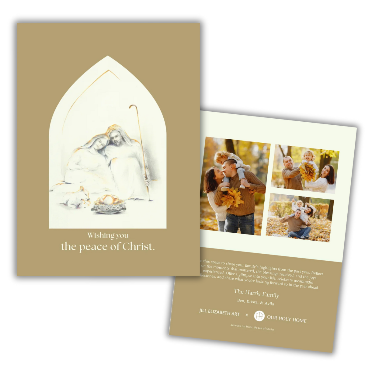 Our cards were beautiful and excellent quality. To be able to share the true meaning of Christmas is my goal in searching for a family photo card. Our Holy Home nailed it!!