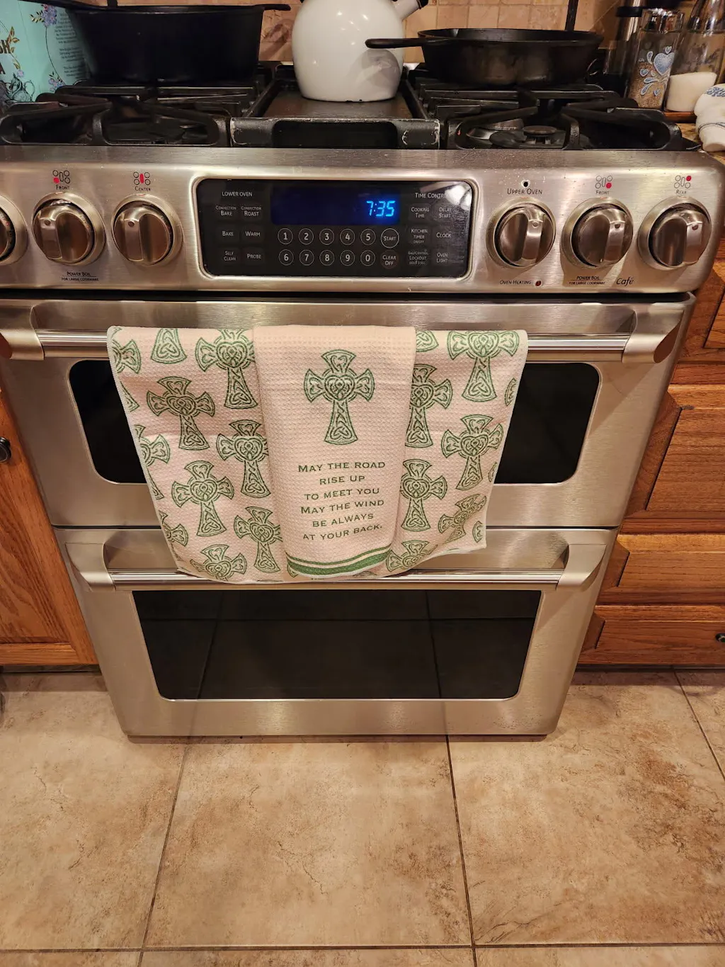 Bring the charm of Irish tradition to your home with this Irish Blessing Dish Towel! Featuring a beautifully scripted Irish blessing surrounded by delicate Celtic-inspired designs in vibrant green, this towel is both a practical and meaningful addition to your kitchen. Whether you’re drying dishes, adding a decorative touch, or giving a thoughtful gift, this towel is sure to inspire faith and warmth in every use.